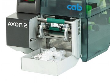 Aplicator etichete autoadezive pentru produse cilindrice - tuburi, destinat instalarii in partea frontala a imprimantelor CAB din seria Squix. Modulul de aplicare AXON 2 permite aplicarea etichetelor autoadezive pe produse cu forma cilindrica precum flacoane sau eprubete, cu lungimi de 25 pana la 120mm cu tot cu capac si un diametru de 10-22mm sau 7-12mm cu acceosriile optionale afernete.