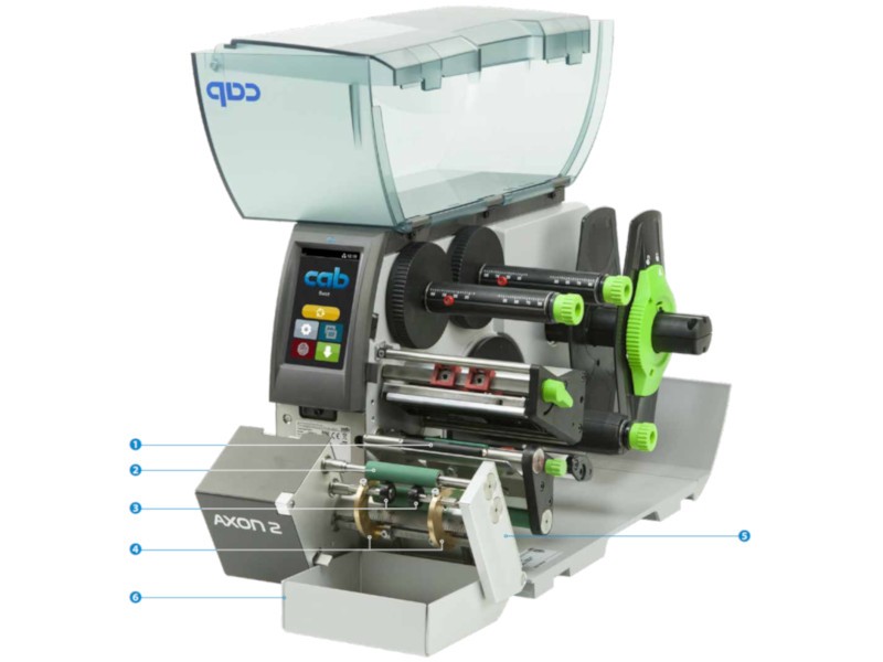 Aplicatorul Cab AXON 2 este special proiectat pentru aplicarea etichetelor autoadezive pe produse cu forma cilindrica - tuburi precum flacoane si eprubete, este compatibil cu seria de imprimante CAB SQUIX cu latimi de imprimare de 4 inci, in variantele cu aliniere centrala si modul peel off - dezlipire automata a etichetei (SQUIX 4MP si SQUIX 4.3MP). Standard aplicatorul permite etichetarea obiectelor cilindrice cu un diametru intre 10 si 22mm, dar cu optiuni dedicate permite aplicarea si pe diametru intre 7 si 12mm.